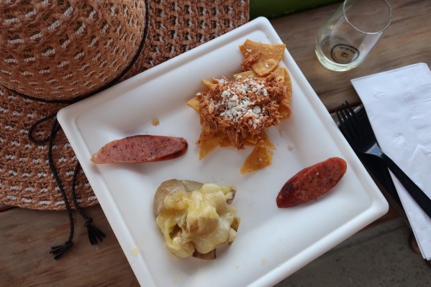 Now around this time you might be thinking, chips and croutons? That’s it?! HAHAHA ohhhh was I wrong! Suddenly Mark (the owner of On the Mark, hence the name) spoke up and quickly thanked everyone and as if he read my mind introduced Bubba who took over and announced that there was more food! Raclette cheese melted under a heat lamp and generously dribbled on top of garlic potatoes….. Bbq chicken nachos…. drool…… Mikes American Gourmet Sausages?! Let’s just say I had to go and buy a package of those sausages to take home for dinner that night.